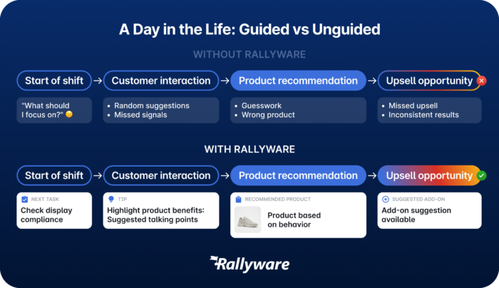 Rallyware’s AI-native workflows are designed to guide frontline teams with precision, embedding the next best action directly into their day.